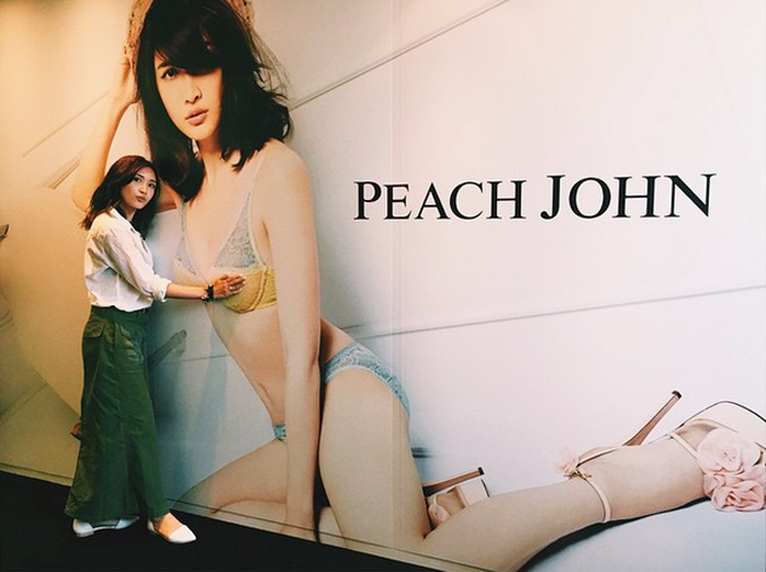 紗栄子はPEACH JOHNのモデルを務めており、現在、各地でポスターを見ることができる。